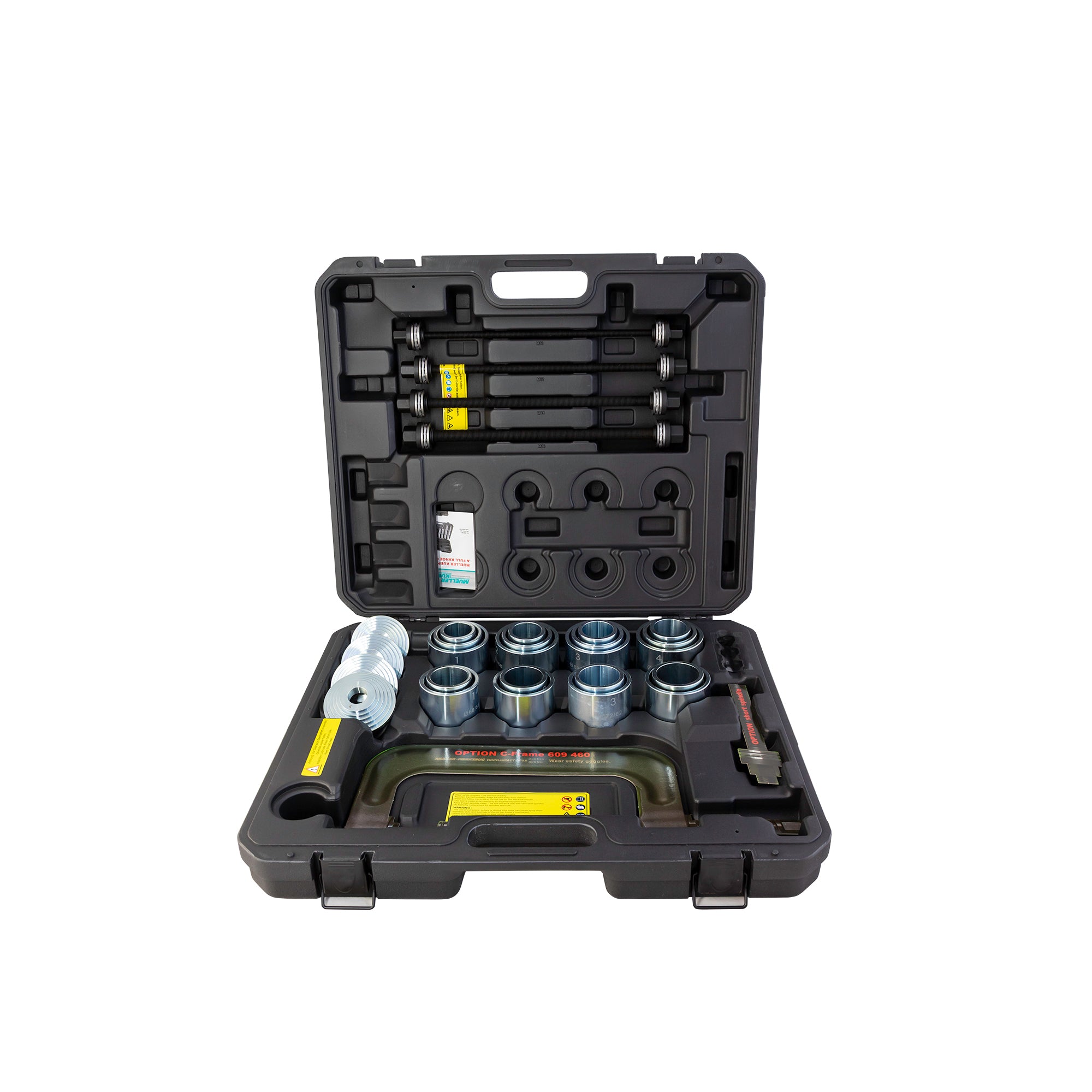 Please note: clamp and thread extender shown in case with cutouts, are optional extras