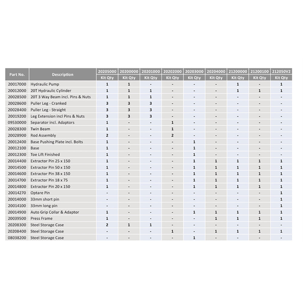 • These extra packs consist of Separator packs, Accessory Packs and in the 20 Tonne version there is also a Press Frame pack available
